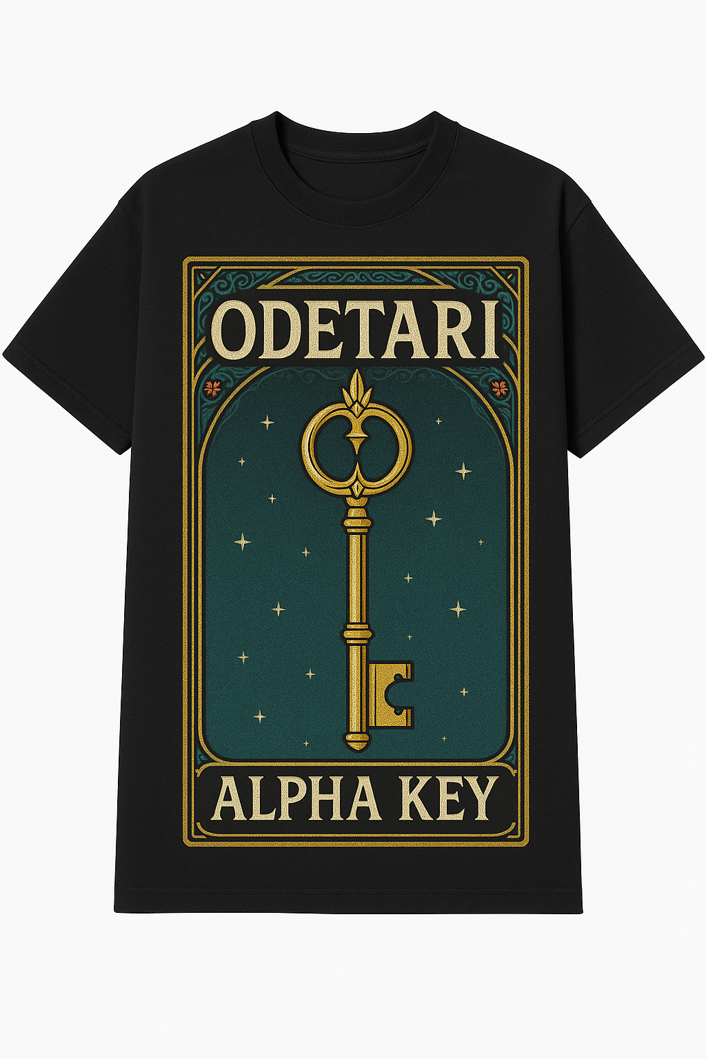 This Alpha Key T-shirt marks the beginning of The Hidden Gate saga — a world born from a desperate wish, trapped between illusion and reality. Only six mysterious keys exist, and this is the first.